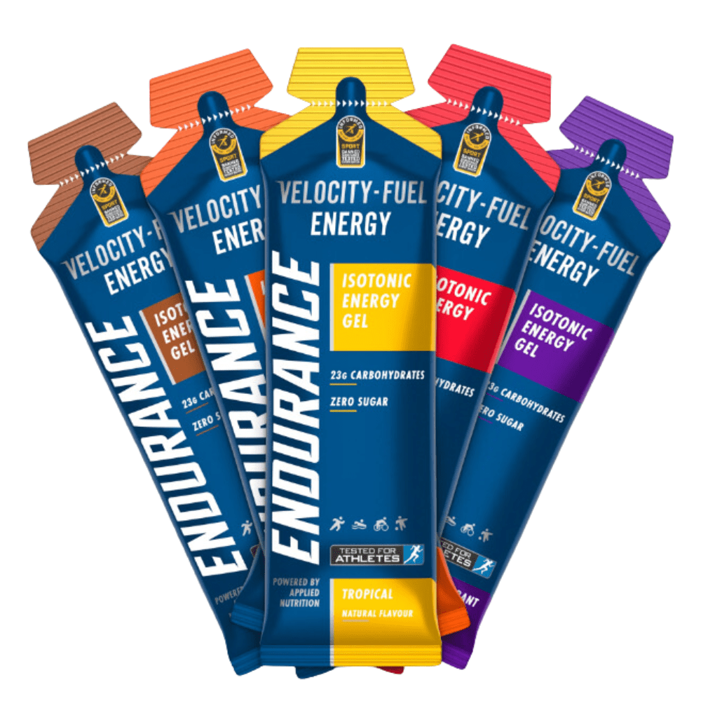 Endurance Velocity-Fuel Energy delivers 23g of fast absorbing carbohydrates packed into a convenient sized gel sachet.