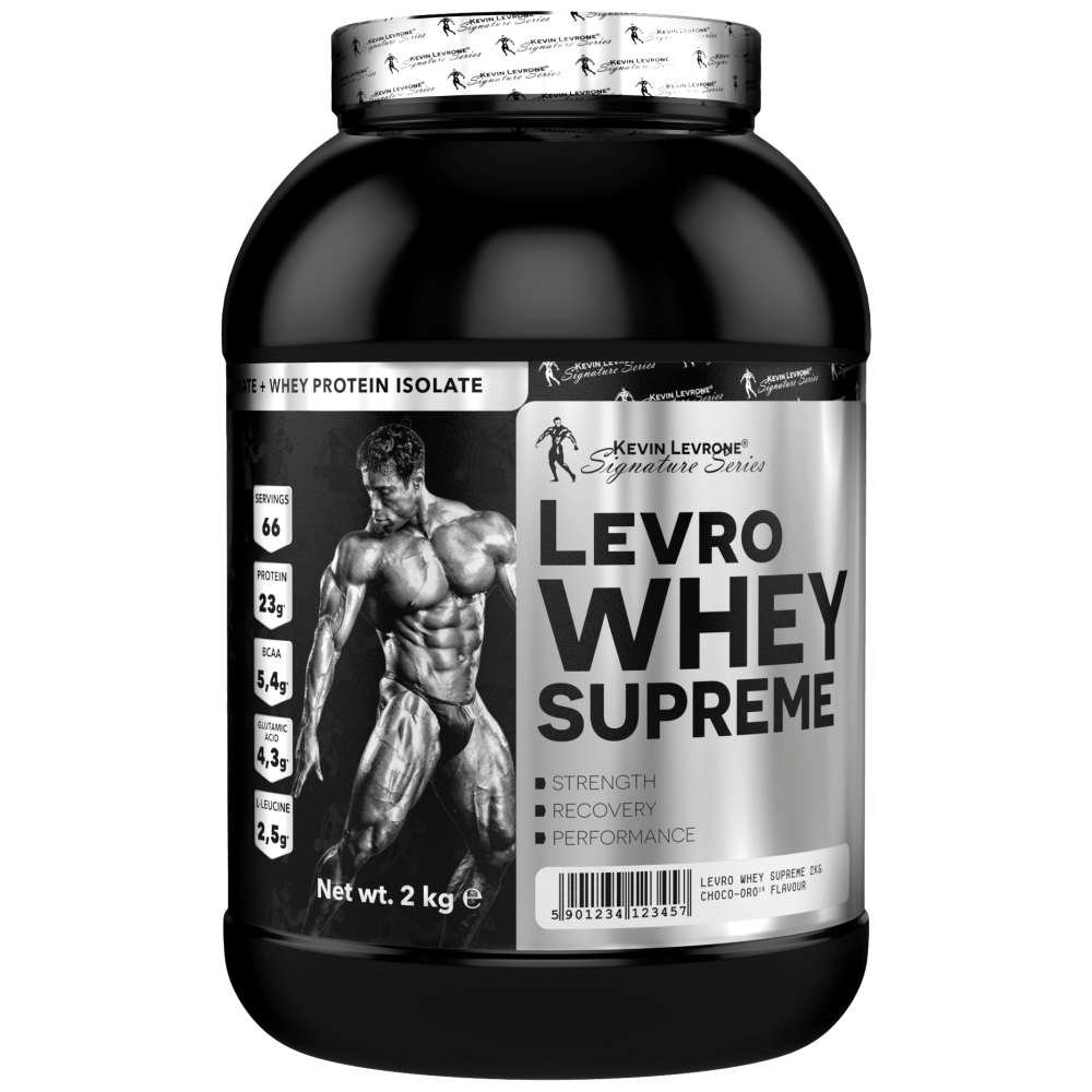LevroWheySupreme. With sweeteners. Whey protein concentrate powder for preparing high protein shakes. Product is designed for athletes and physically active people with a higher demand for proteins.